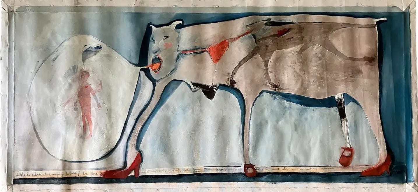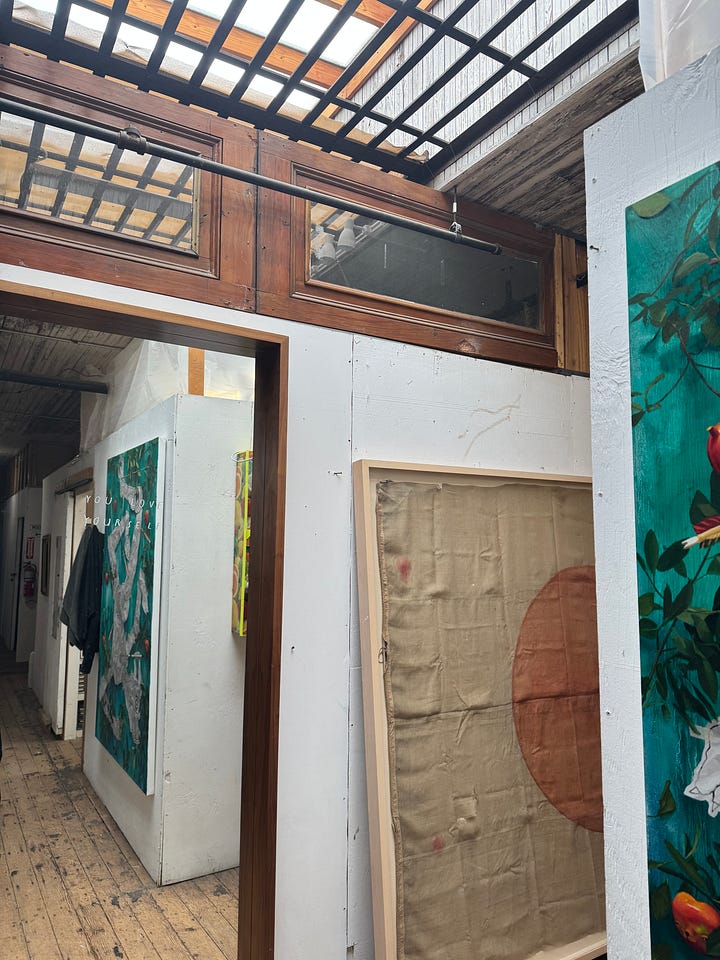 Unstretched Oil painting by Lorena Cabrera. Unstretched canvas gives this piece a W.I.P, studio sensibility.