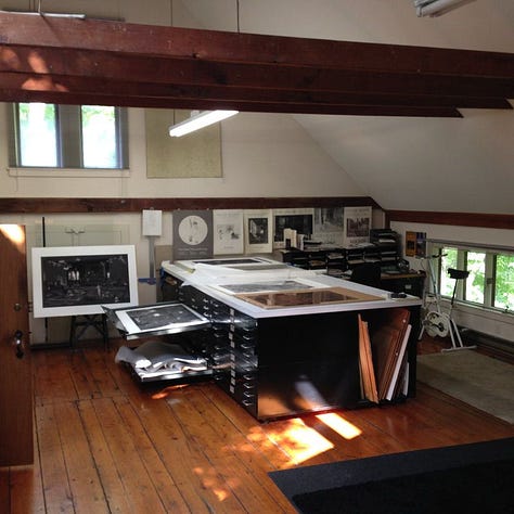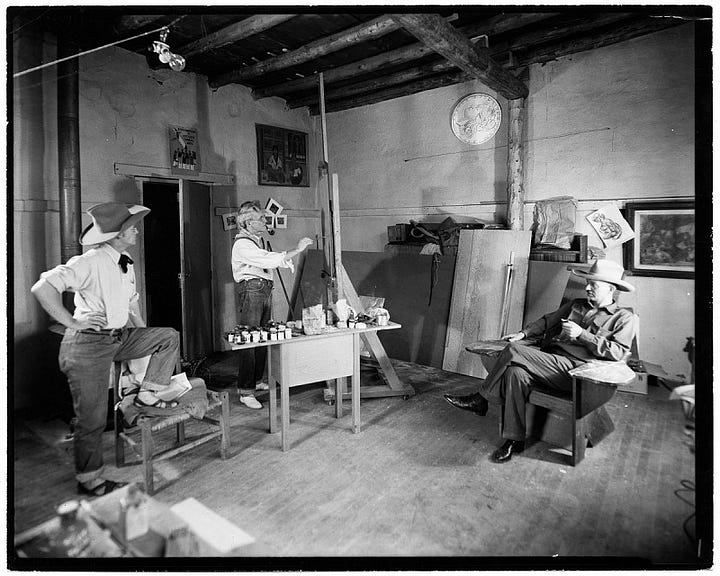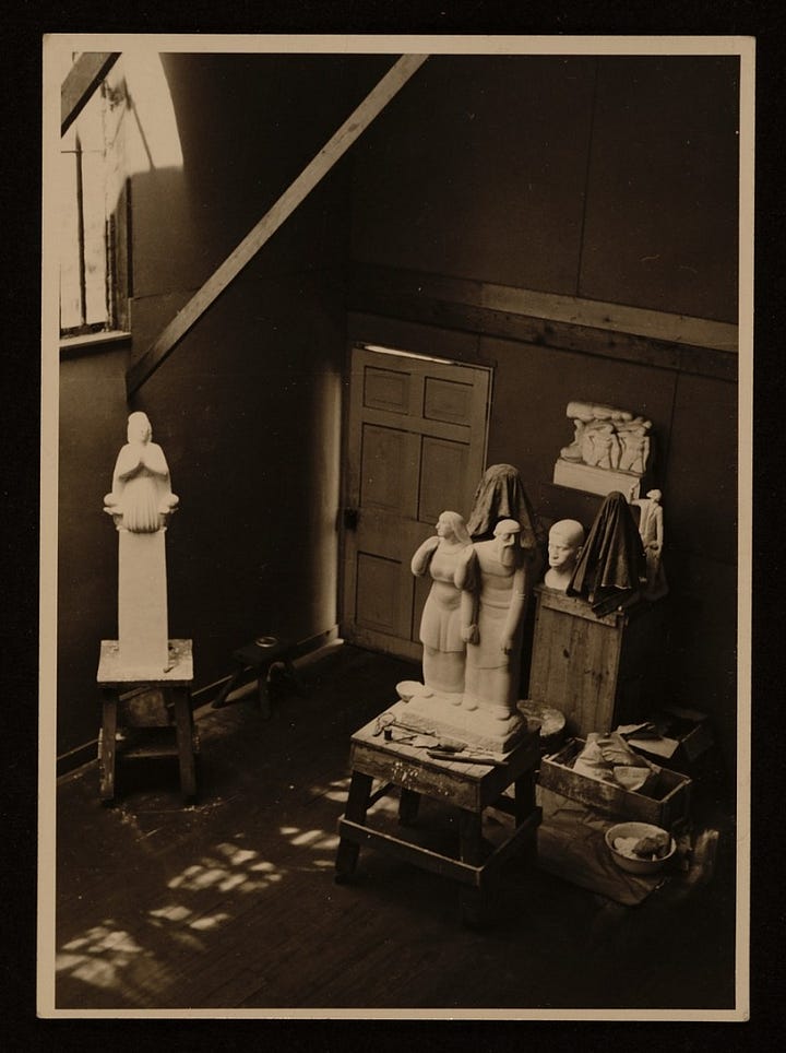 Due to my aforementioned aversion to feed-based platforms that keep you in your comfort zone, I chose to forego Pinterest when looking for inspiration. Instead, I utilized the Smithsonian’s Collection Search, which let’s you search by keyword, then narrow down by factors like date, resource type, and place. I even found a curated collection called “Artists In Their Studios.” I used search terms from “bandsaw” to “ballet rehearsal” to uproot reference images of studios. The results were inspiring.