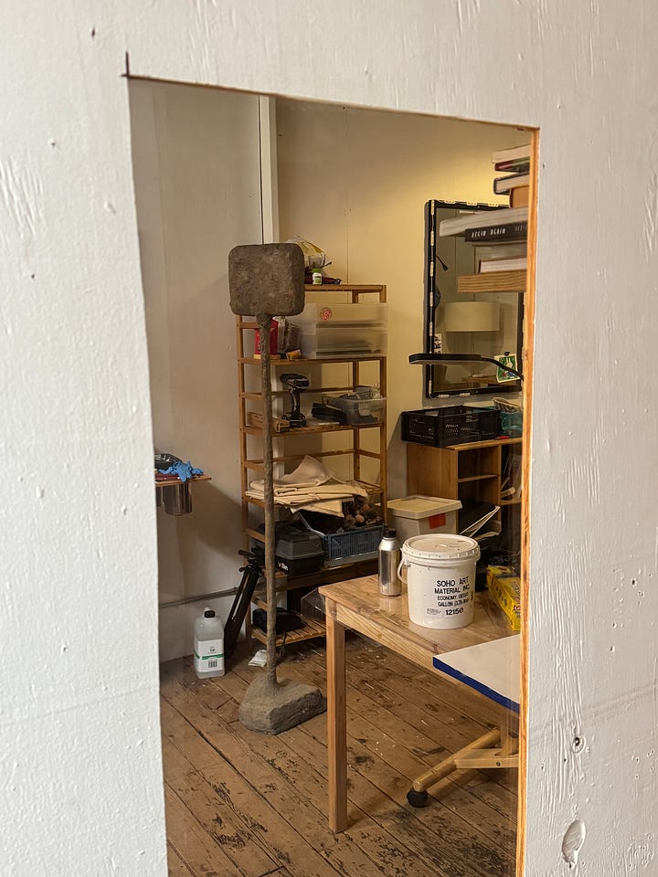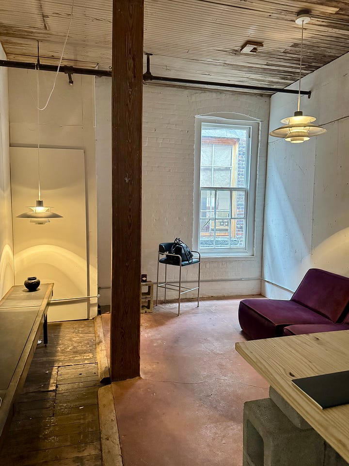As I acclimate to my new workspace, the answer to the aesthetic question has finally begun to crystalize. When I first toured the building, I felt a return to self. There is a coffee cup holder (a 5”x5” chunk of raw wood with a note to “place coffee here”) nailed to the front door, haphazard plywood walls, handwritten door signs, horrible insulation. It’s at once hyper-functional and totally uncomfortable. I signed the lease as soon as they’d let me.